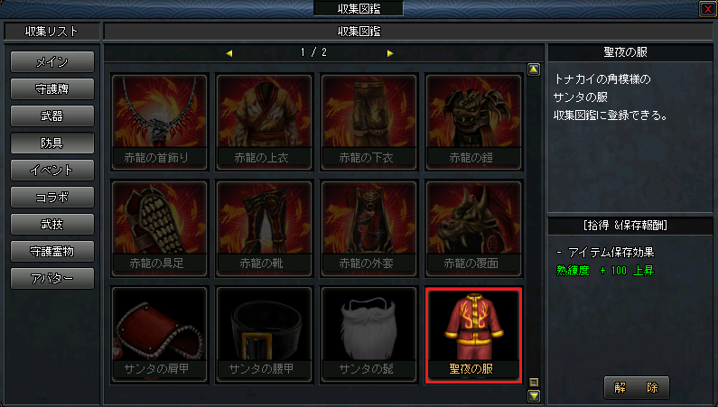12月25日はクリスマス! イベント期間2025年12月25日(木)0:00~2025年12月25日(木)23:59 イベント条件対象期間中にゲームにログインされた方全員に クリスマス限定収集図鑑アイテム「聖夜の服」を もれなくプレゼント! 聖夜の服とは?![]() 【 達成条件についての注意事項 】 ※期間中に【必ず】一度ログアウト/再ログインする必要がございます。 上記を行っていない場合、対象外となる場合がございます。